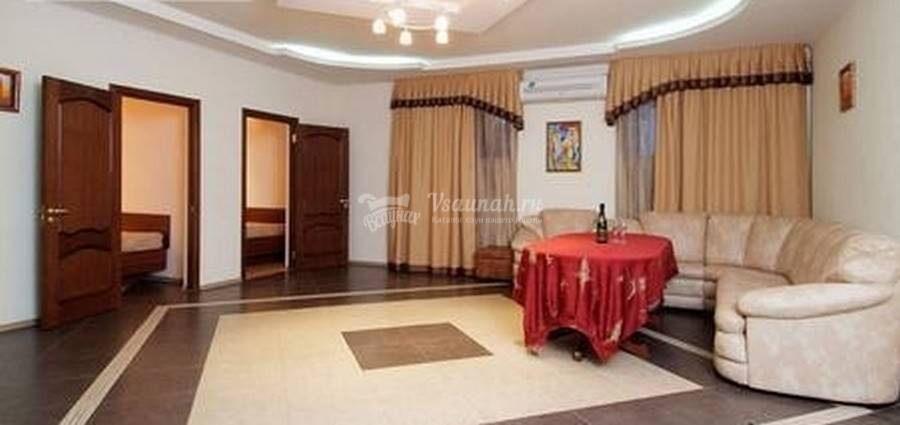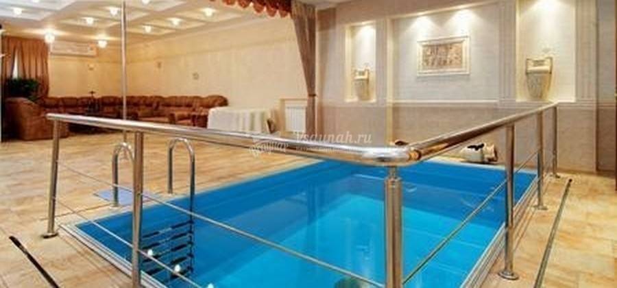 Гостевая комната зала способна вместить 12 человек. Здесь можно повеселиться в большой оживленной компании, поплавать в чистом просторном бассейне, а также погреться в русской парной